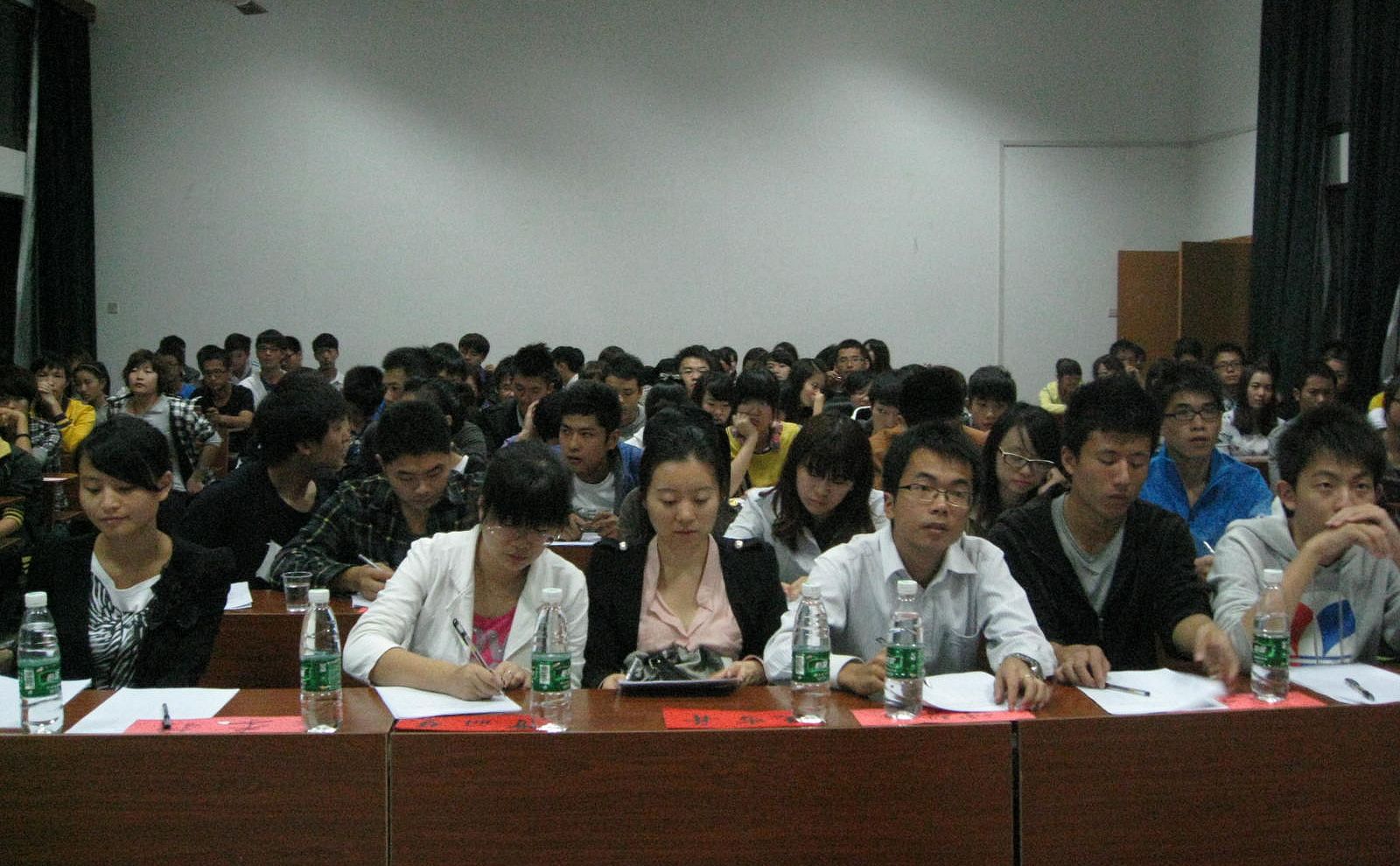 经管系2012届团总支学生会干事招新工作近日进入决选阶段,101920日晚在南校区T2教室分别进行了团总支和学生会干事的竞选。担任竞选评委的有经管系团总支书记王雪舟老师、年级辅导员曹丽慧老师、主席团各成员各部门部长及副部长。