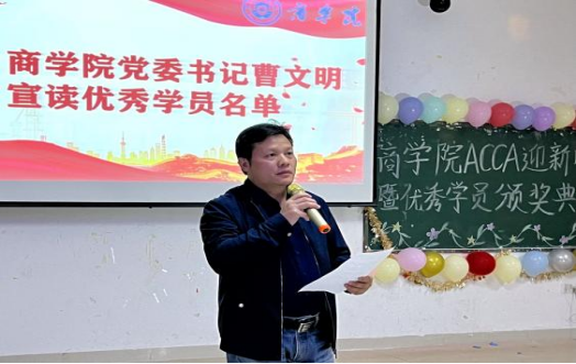 2022年11月6日晚,以“奋进新征程,强国复兴有我”为主题的商学院ACCA迎新晚会暨优秀学员颁奖典礼在经管楼601顺利举行。楷柏财经高校运营部华南区经理刘彪,304永利集团官网财务处处长赵少平、审计处处长杨凤鸣、教务处处长李理、学工部部长曹毅,商学院全体院领导以及ACCA各班班主任、辅导员及全体学员参与本次活动。