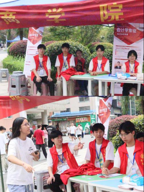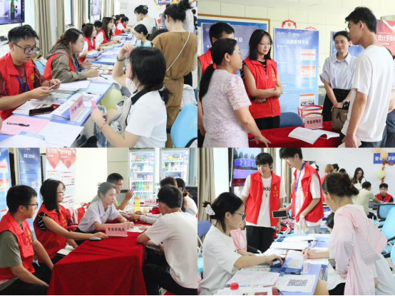 学院于经107、阳光服务平台以及润泽食堂设立的志愿服务站。志愿者们统一着装、热情服务,为新生提供线上报到认证、学费咨询、校园卡办理等“一站式”服务,并协助搬运行李、指引路线、答疑解惑,以无微不至的关怀让新生感受到“家”的温暖。