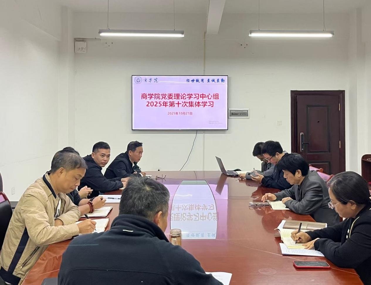10月21日下午,商学院党委理论学习中心组举行2025年第十次集体学习,党委书记曹文明主持并讲话,副院长李闯作交流发言,学院党委理论学习中心组全体成员参加学习。