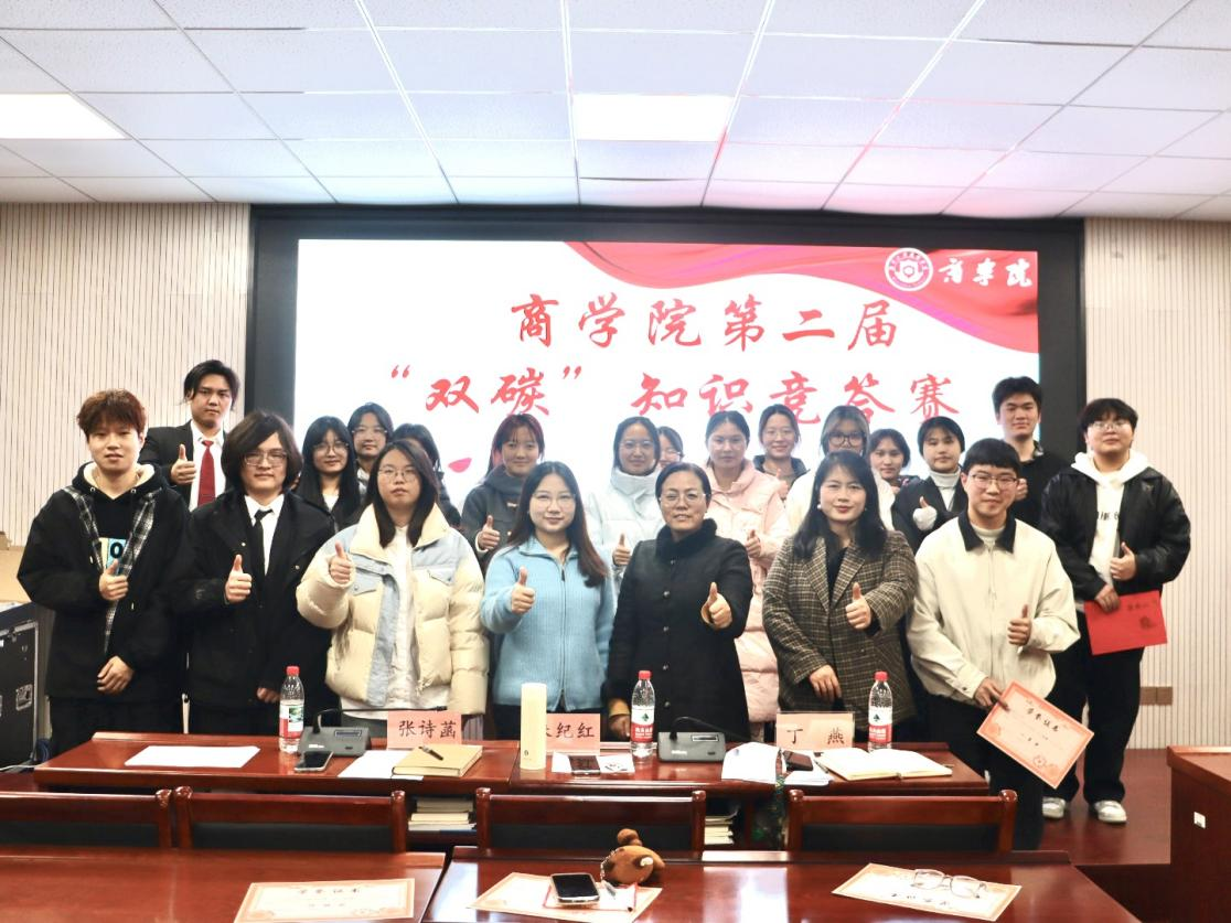 为提高大学生对“双碳”的认识,引导其关注社会环境问题,厚植节约环保理念,12月4日,商学院于经管楼302开展第二届“双碳”知识竞赛。商学院副院长朱纪红、金融工程教研室主任丁燕、学工办主任张诗菡、碳金融科普协会全体成员及学生代表出席。