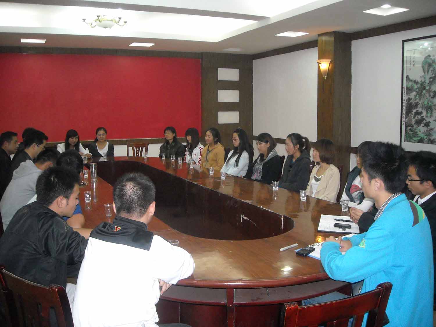 9月21日晚上,经济与管理系在系会议室召开了民族学生座谈会,来自6个民族的15名新生、系党总支书记袁勤、副书记黄春喜、辅导员张勇出席了座谈会。
