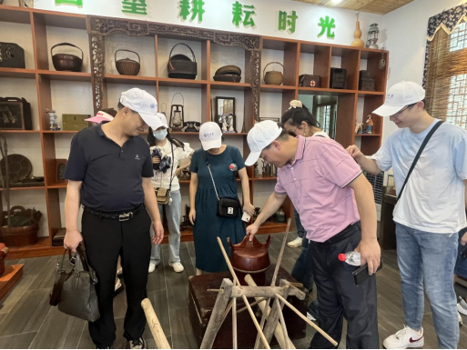 衡南县茶市镇怡海村村长罗三平对商学院一行的到来表示热烈欢迎,并为大家详细介绍了当地相关特色产业。该村先后荣获了“衡阳市先进基层党组织”“湖南省美丽乡村示范村”“湖南省法治建设示范村”“湖南省文明村”“湖南省精品村”“全国乡村治理示范村”等称号,并建有火龙果、阳光玫瑰葡萄等水果大棚,生态产业丰富。罗三平带领大家参观怡海村党建微展厅,重温党走过的光辉岁月,追寻红色记忆,身临其境感念党的伟大,这里是村部红色宣传教育的缩影。教师们感慨万千,更加坚定理想信念。在农耕博物馆品读农耕岁月、体验劳动艰辛、乡土记忆和传统文化时刻提醒我们,不忘艰苦奋斗,不忘初心。