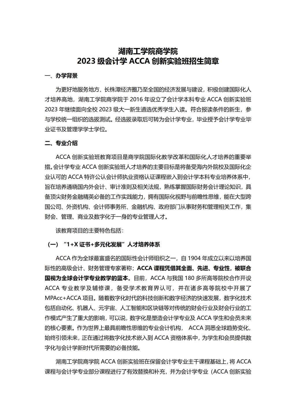 304永利集团官网商学院2023级会计学ACCA创新实验班招生简章