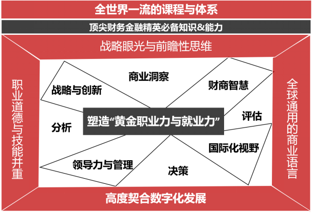依托商学院的学科优势,将财务数字化、国际化嵌入ACCA的培养方案中,旨在培养熟练掌握国内外会计、审计准则及相关法规,掌握顶尖财务金融精英必备知识和能力,具备国际化视野与前瞻性思维,能在大型跨国公司、外资机构、会计师事务所、金融机构、政府部门从事财务和管理相关工作,集财会、管理、商业及数字化于一身的高级管理人才。