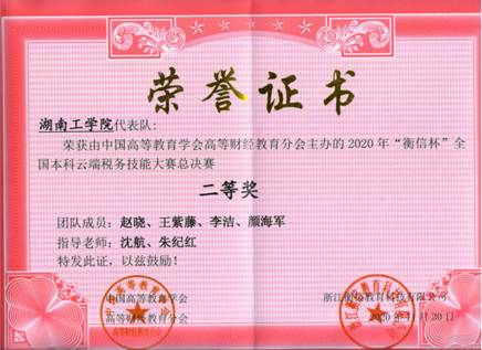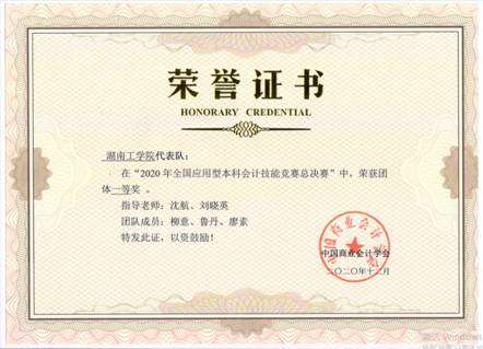 2017年“第二届全国应用型本科会计技能竞赛全国总决赛会计电算化个人二等奖