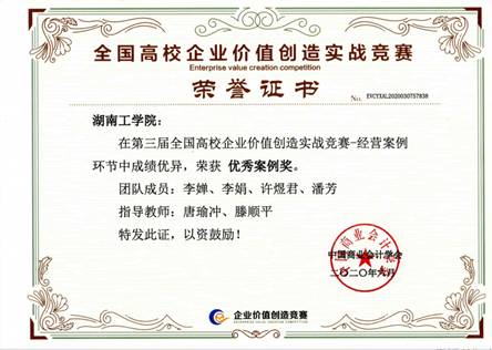 2018年湖南省第三届大学生企业模拟经营竞赛
