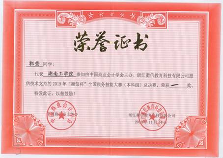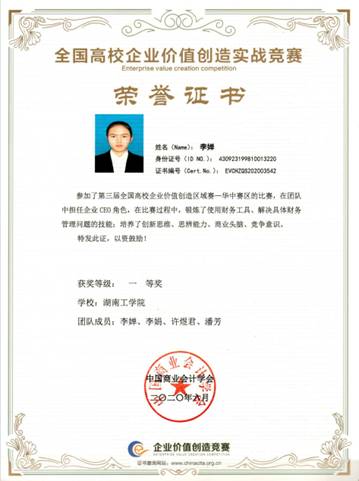2017年“第二届全国应用型本科会计技能竞赛西区区域赛会计电算化个人一等奖