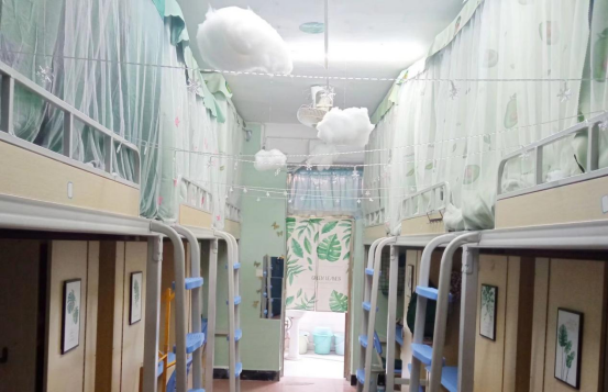 304永利集团官网商学院学生宿舍主要集中在学校润泽公寓2栋、6栋、7栋、8栋、9栋、10栋、11栋、15栋,润泽公寓是学校住宿条件最好的学生公寓,一般为标准四人寝,配有独立的卫生间和阳台,每个寝室标配洗衣机、空调、电风扇,每个床铺标配实木书桌、书架和衣柜,宿舍热水使用方便。润泽公寓靠近润泽食堂和学校主教学楼及经管楼,就餐、上课和学习非常便捷,为同学们学习生活提供了舒适温馨的良好环境。