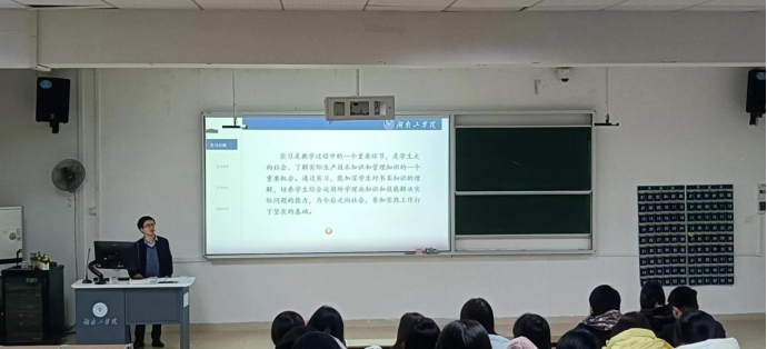 洪敏主任从实习目的、实习要求、实习内容、时间安排等方面做出了详细介绍,并建议学生在毕业实习过程中一定要多听、多看、多思考,努力将理论知识应用于实践工作当中,做到学有所获,学以致用。杨英老师就实习平台的数据采集、实习材料提交等进行了详细安排,并提醒毕业生在实习过程中要加强自身安全,严格遵守实习管理规定和企业规章制度,做到认认真真实习,兢兢业业工作,开开心心生活。