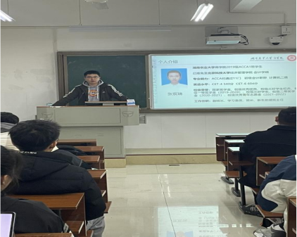 2023年3月18日下午,ACCA教学班学子在经管楼502举行了学习经验分享会,特邀湖南农业大学的张宸瑞、彭湘婷两位同学进行经验分享。会议由楷柏财经学生发展部班主任王玉洁老师主持,ACCA2001、2101、2201班全体同学参加了此次分享会。