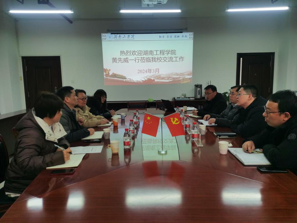 黄先威对学校的热情接待表示感谢,并简要介绍了湖南工程学院的发展情况。双方还就审核评估线上、线下评估工作流程与自评报告撰写、支撑材料准备等具体问题进行了对口交流。