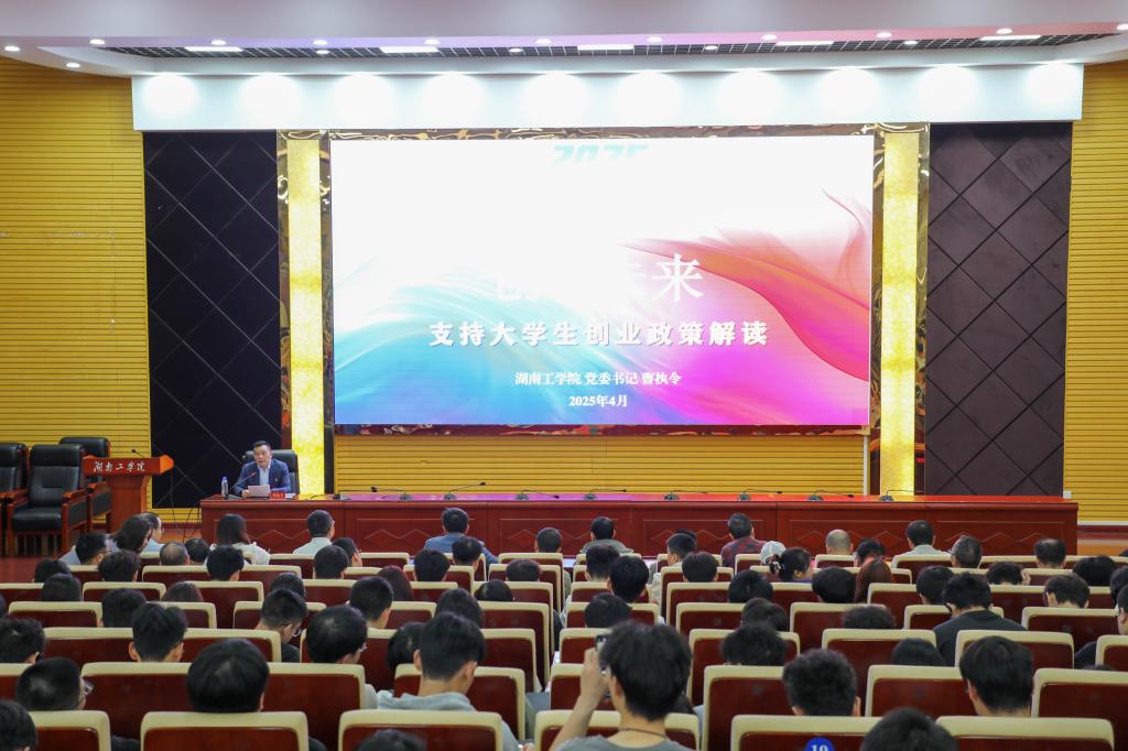 在政策宣讲环节,曹执令以“相聚青春 创享未来”为主题,围绕省委高度重视、省级政策支持、学校全面护航、青春使命召唤四个方面,对创新创业的重要性、必要性、可行性进行了系统阐述。