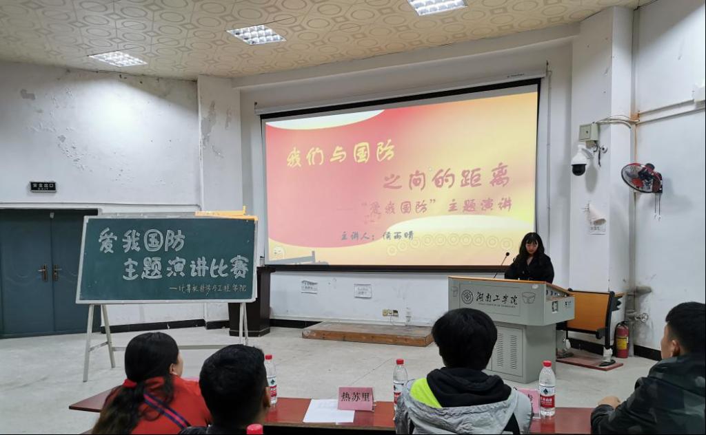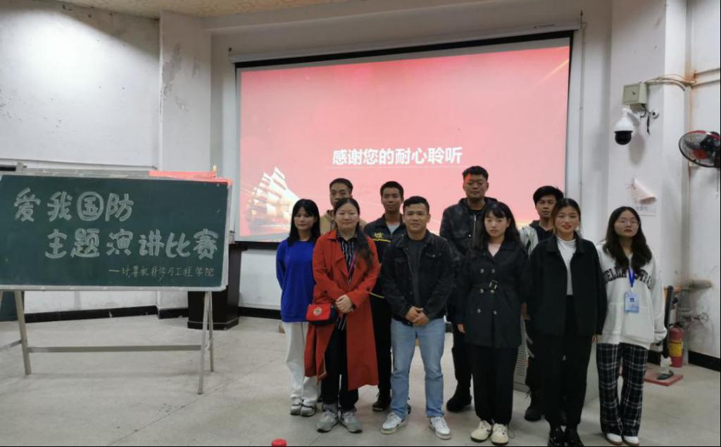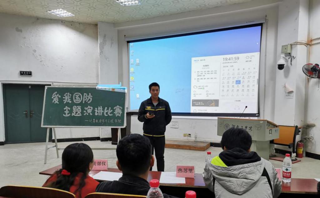10月14日晚上,为弘扬爱国主义精神,全面普及国防知识、强化国防观念、增强国防技能,营造关心、支持和参与国防建设的浓厚氛围,计算机科学与工程学院于2114举办了以“爱我国防”为主题的演讲赛。计算机学院学工办主任兼分团委书记黄馨仪和辅导员热苏里·乌斯曼莅临此次演讲比赛。在轻快的音乐,绚丽的PPT画面中拉开了此次演讲比赛的序幕。
