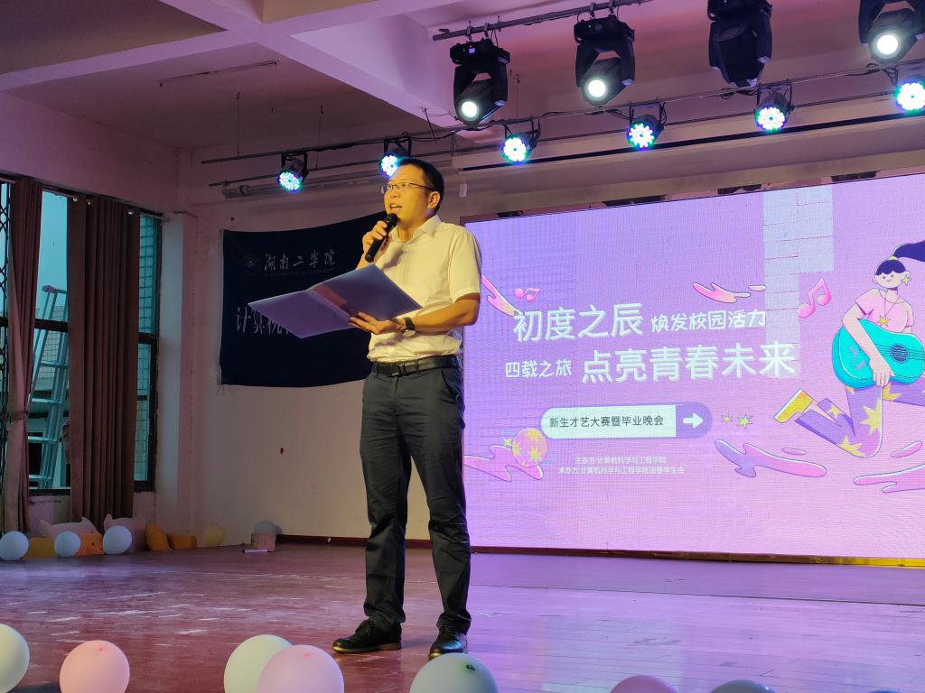 6月2日晚,为给新生提供展示自我的舞台,彰显青春活力与个性,也为给毕业生大学生活画上一个圆满的句号。计算机科学与工程学院新生才艺大赛暨毕业晚会在B区食堂三楼顺利举行。计算机学院党委书记黎昂、院长陈敏、副书记李玉秀、副院长唐琨皓、全体辅导员、各二级学院团委学生会代表和我院新生与毕业生观看了演出。