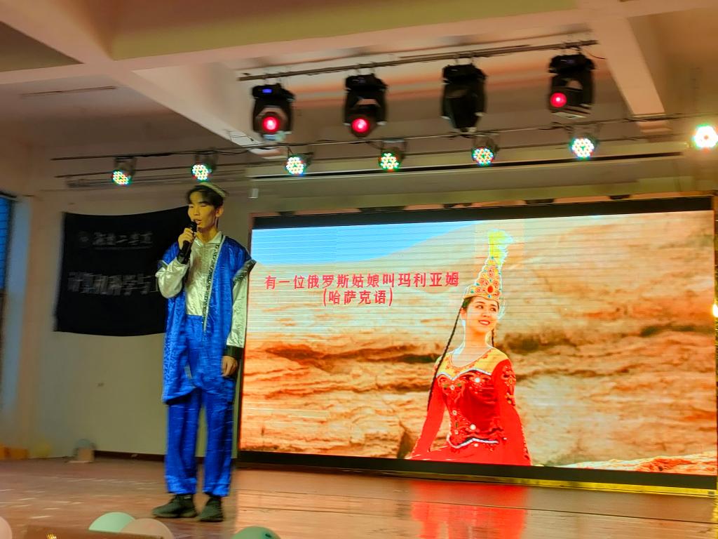 百花齐放,尽显青春本色。活动在翩翩的舞姿中拉开帷幕,参赛选手们多才多艺,节目内容丰富、种类多样,包括舞蹈、歌唱、武术、脱口秀、小品等形式。其中,用“哈萨克语”演唱的《可爱的一朵玫瑰花》,歌声悠扬让人沉醉,从歌声中感受到了哈萨克民族特有的热情大方和独特的民族风情;伴随着铿锵的节奏,武术协会表演的《百鬼夜行》武出了吾辈当自强的豪迈,赢得了在场观众的阵阵掌声;最后,随着一曲经典的《月半小夜曲》结束,本次比赛落下帷幕。