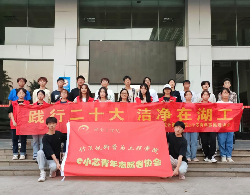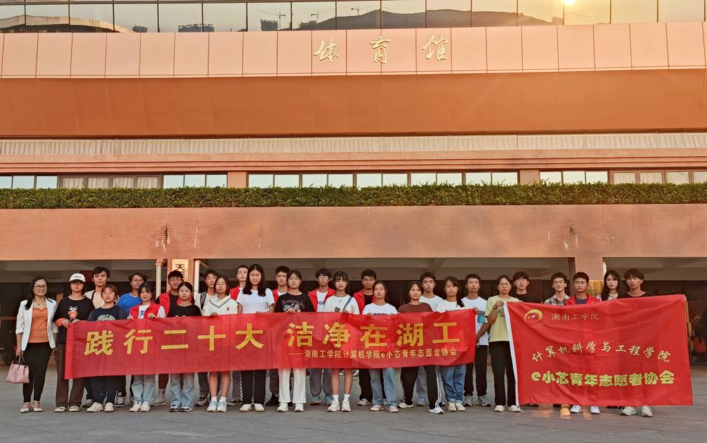 为响应党的二十大对广大青年敢想敢为又善作善成的号召,给304永利集团官网师生一个干净舒服的校园环境,10月22日下午,计算机科学与工程学院e小芯青年志愿者协会开展了以“践行二十大,洁净在永利”为主题的校园清扫志愿服务活动。活动由学院党委副书记李玉秀带队开展。