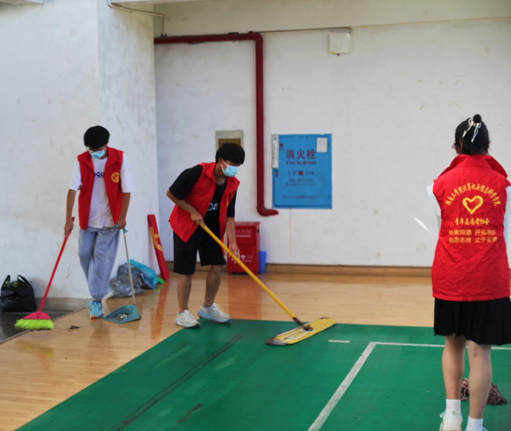 志愿者分为两队分别前往体育馆和信息楼,他们在教室和体育馆的各个角落来回穿梭,扫地,拖地,擦拭桌椅、清洁地板及窗户……三五一组,干劲十足,一项项工作有序进行。他们不怕脏,不喊累,经过三个多小时的“奋战”,体育馆和教室都变得光亮整洁、焕然一新。志愿者用实际行动为永利增添了一份清新,一抹明亮。这不仅是一次美化校园、服务同学的活动,同时也让更多院内学子了解并投身到志愿者服务事业中,提升学校志愿者服务能力,营造和谐校园氛围,推动校园精神文明建设。