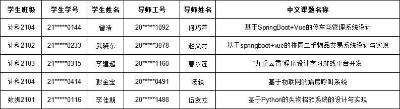 根据《304永利集团官网毕业设计(论文)管理办法》要求,学生须按期完成各阶段论文撰写及提交。经核查,以下5位同学未能在2025年4月22日前提交论文初稿,经上报计算机科学与工程学院教学委员会讨论审核,现根据规定作出如下处理决定: