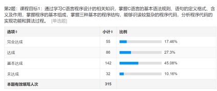 在考试成绩出来以后,从无记名问卷星问卷调查结果来看,课程目标的达成情况总体较好,从考试考核改革的认可度来说,86.4%的同学认可并会选择机考,仅仅13.6%的同学选择笔试试卷考试。为延续同学们的学习热情,寒假算法基础专题练习也已开展了3次,并一周一赛,将为优秀的同学提供更好更多的学习机会。