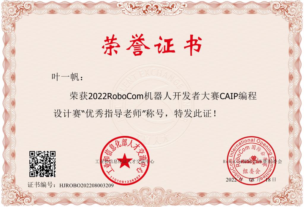 近日,由工业和信息化部人才交流中心、RoboCom国际公开赛组委会共同主办的“2022 RoboCom 机器人开发者大赛CAIP编程设计全国总决赛”(以下简称RoboCom-CAIP)圆满结束。经过全国24个省份160余所高校的选拔,本科组共有1126人进入全国总决赛,通过与众多高校选手的激烈角逐,304永利集团官网计算机科学与工程学院ACM集训队取得了国家级二等奖 3 项、国家级三等奖3 项的好成绩,计算机科学与工程学院戴成秋、叶一帆荣获“优秀指导教师”荣誉称号。