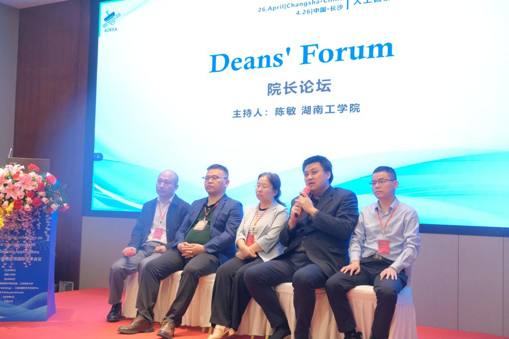 院长论坛由陈敏主持,北京大学遥感与地理信息系统研究所教授范闻捷、南京信息工程大学中欧医学人工智能研究院执行院长刘辉、南华大学计算机学院院长万亚平和湖南文理学院研究生院院长李建奇四位专家分别就现场提问给出了人工智能学科融合、教学改革、人才培养、行业应用和青年学者发展等相关话题深刻、独到的见解,与会者纷纷表示受益匪浅。
