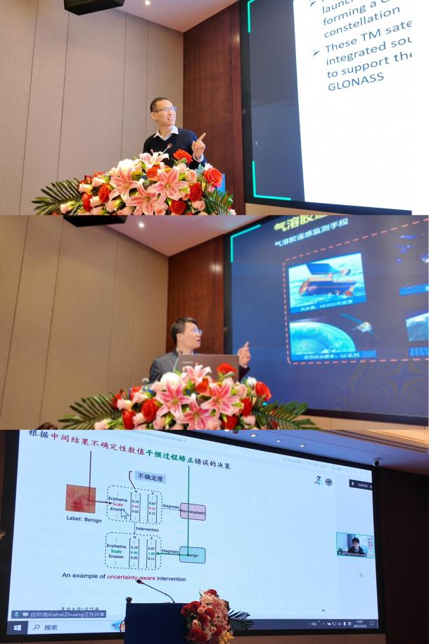 主旨报告阶段,中国矿业大学特聘教授余科根、国家杰青中国科学院空天信息创新研究院教授李正强和复旦大学大数据学院教授庄吓海三位知名专家主要围绕“Spaceborne GNSS Reflectometry for Ocean Applications”“Artificial Intelligence Applications in the Aerosol Remote Sensing”“Intelligent Image Computing and Interpretable Analysis”主题作了精彩纷呈的大会报告。专家学者的报告内容前沿、视角独特,拓宽了研究者的视野,引发了与会者的热烈讨论和积极互动。