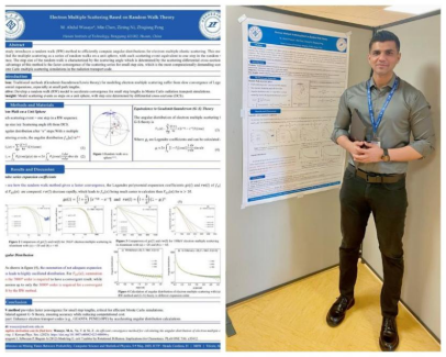 本次会议汇聚了来自全球概率论、计算机科学与统计物理领域的顶尖学者,旨在探讨跨学科交叉研究的前沿问题。Wasaye博士的研究论文《基于随机行走理论的电子多重散射建模》(Electron Multiple Scattering Based on Random Walk Theory)提出了一种创新方法,通过将电子散射过程建模为“单位球面上的随机行走”,显著提升了蒙特卡罗辐射传输模拟中角分布的计算效率。这一突破对高能物理实验、医学放射治疗及材料科学中的粒子输运模拟具有重要应用价值。