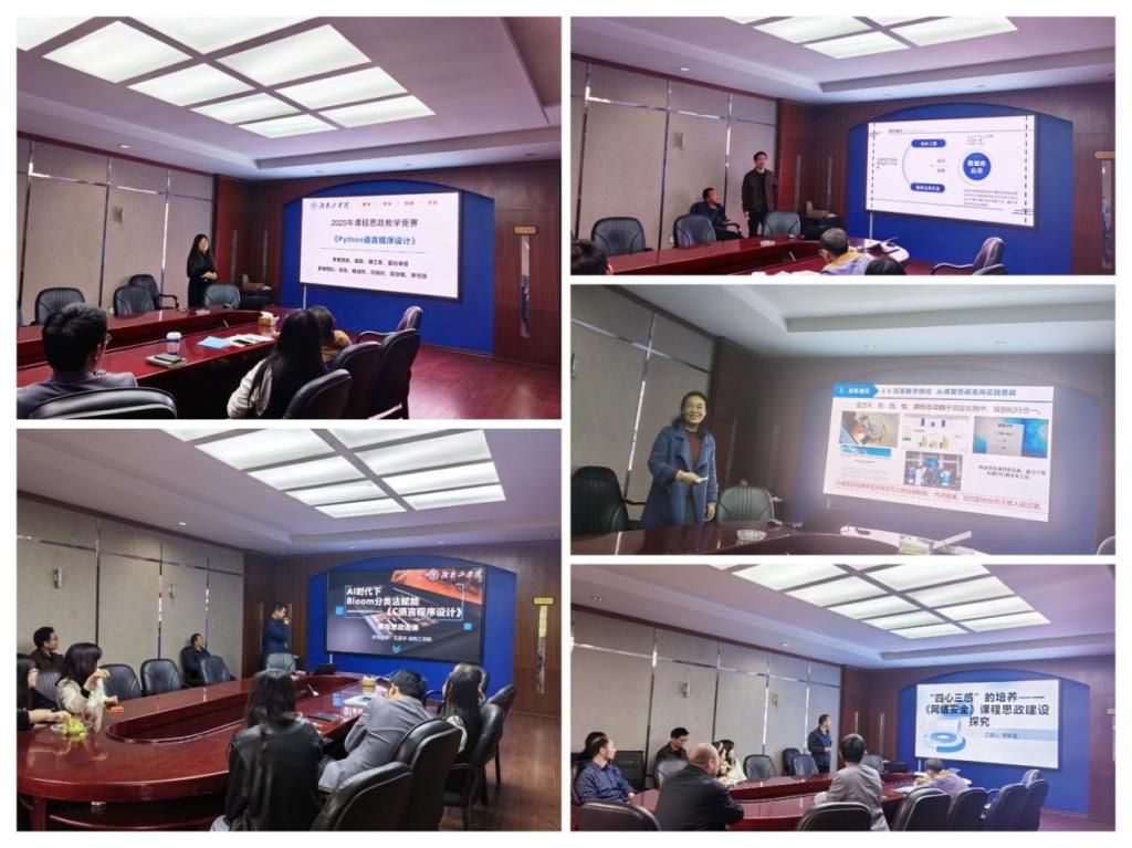 为深入贯彻落实习近平总书记关于教育的重要论述和全国教育大会精神,把思想政治教育贯穿人才培养体系,全面推进高校课程思政建设,计算机科学与工程学院于4月8日在2211小会议室举办2025年“课程思政”教学竞赛。学院院长陈敏、副院长戴成秋、各专业教研室主任等专家担任评委,新入职青年教师现场观摩学习,戴成秋副院长主持活动。