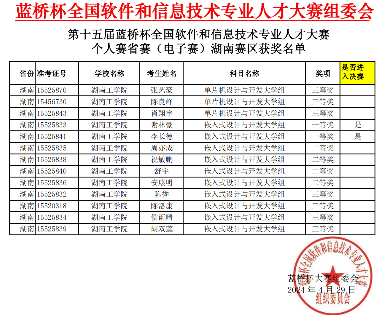 4月29日,第十五届蓝桥杯全国软件和信息技术专业人才大赛个人赛省赛成绩揭晓,304永利集团官网共斩获80个奖项,其中,软件类五个竞赛项目荣获一等奖10项、二等奖24项、三等奖33项;电子类三个竞赛项目荣获一等奖2项,二等奖4项、三等奖7项。这一优异成绩的取得,离不开参赛学生每晚晚训以及一周一赛的辛勤付出,也离不开指导教师的认真指导与备赛,也进一步彰显出永利学生在信息技术领域的技能水平的不断提升。