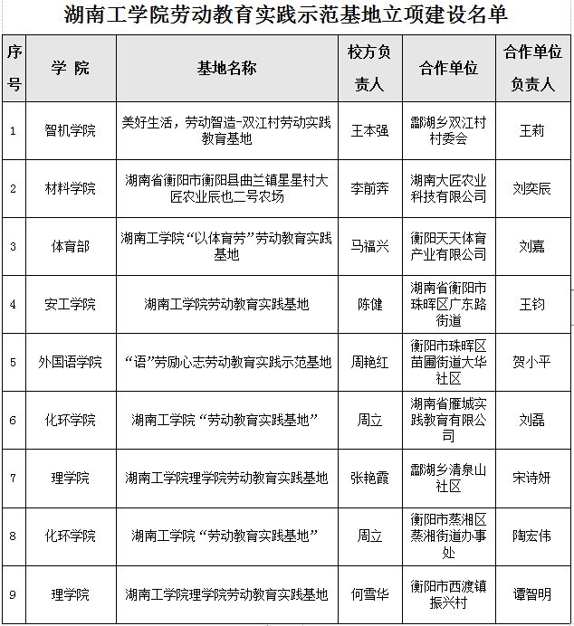 根据《关于开展304永利集团官网劳动教育实践示范基地申报的通知》要求,经二级学院(部)申报、专家评审,拟确定《美好生活,劳动智造-双江村劳动实践教育基地》等9个基地立项建设(见附表),现予以公示。