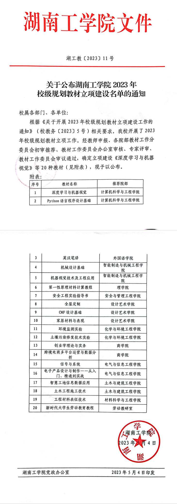 永利教〔2023〕11号 关于公布304永利集团官网2023年校级规划教材立项建设名单的通知