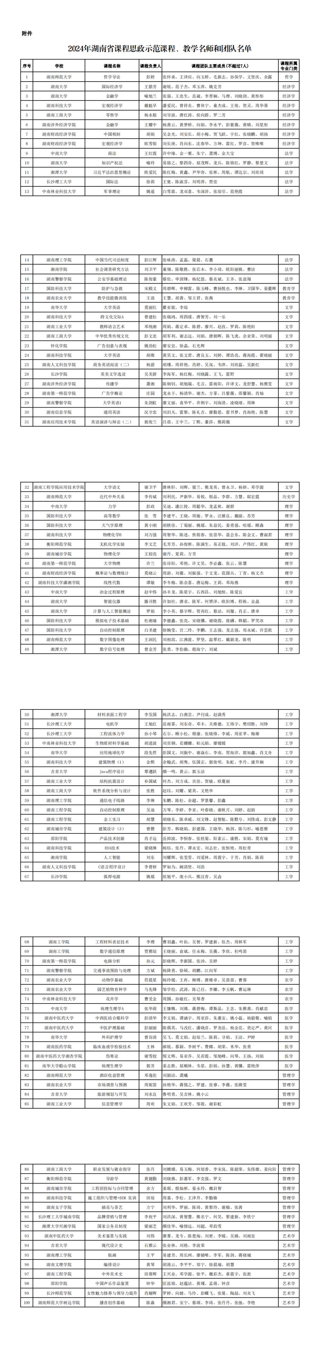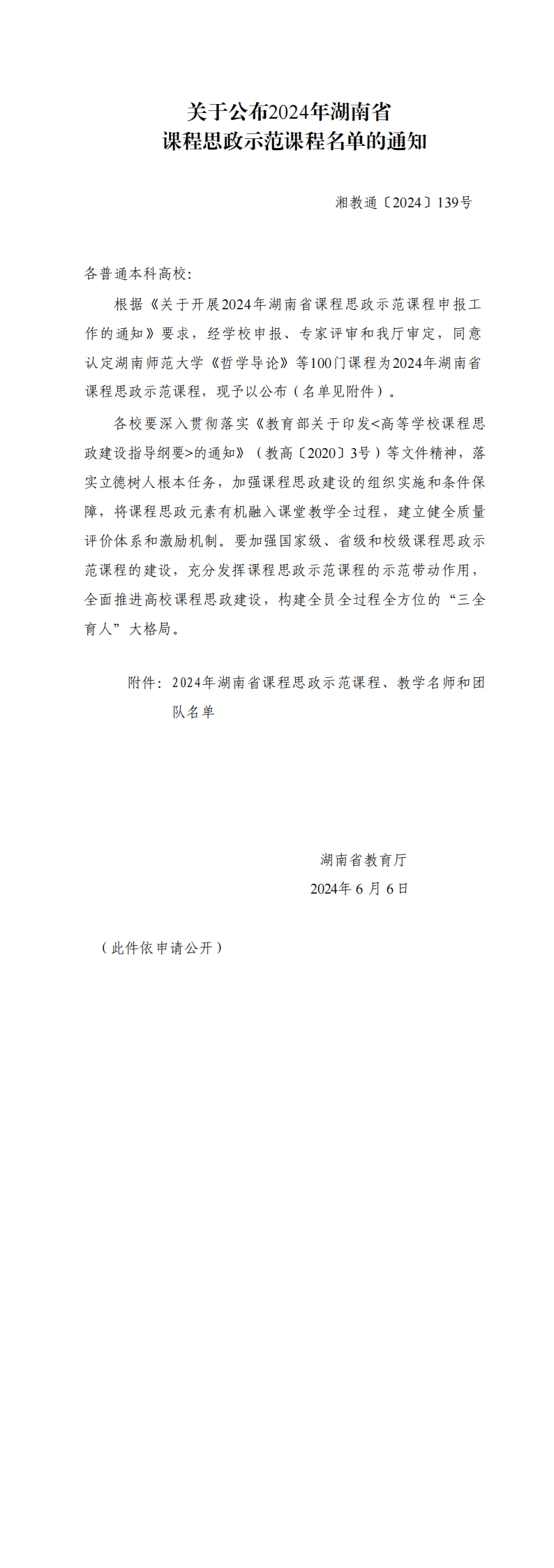 关于公布2024年湖南省课程思政示范课程名单的通知