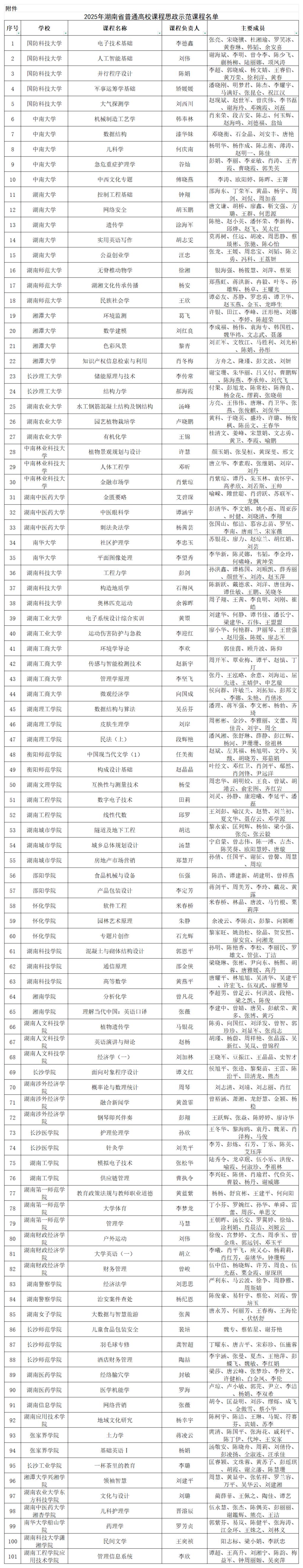 湖南省教育厅关于公布2025年湖南省普通高校课程思政示范课程名单的通知