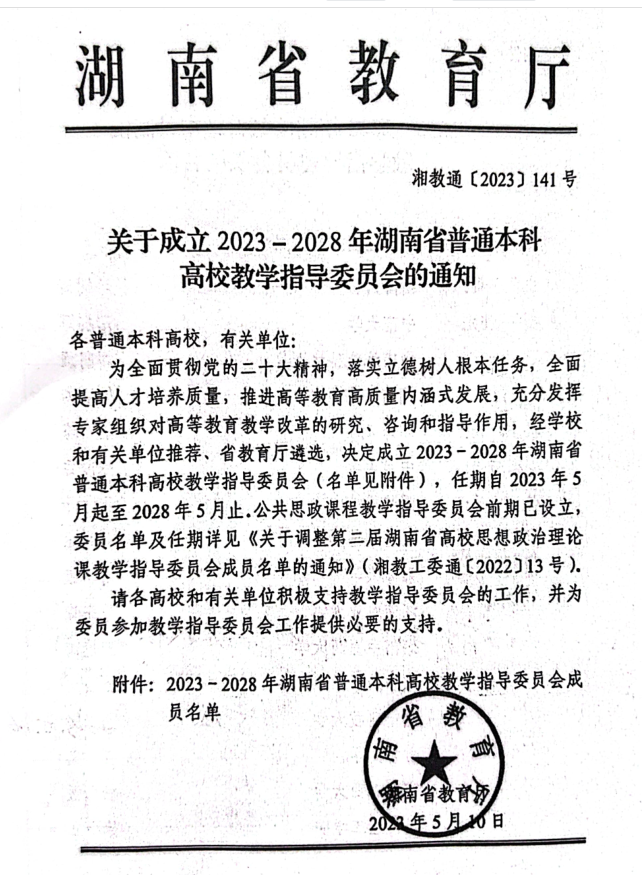 关于成立2023-2028年湖南省普通本科高校教学指导委员会的通知(详细名单见附件)