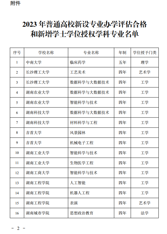 关于公布 2023 年普通高校新设专业办学合格评估和新增学士学位授权学科专业评估结果的通知