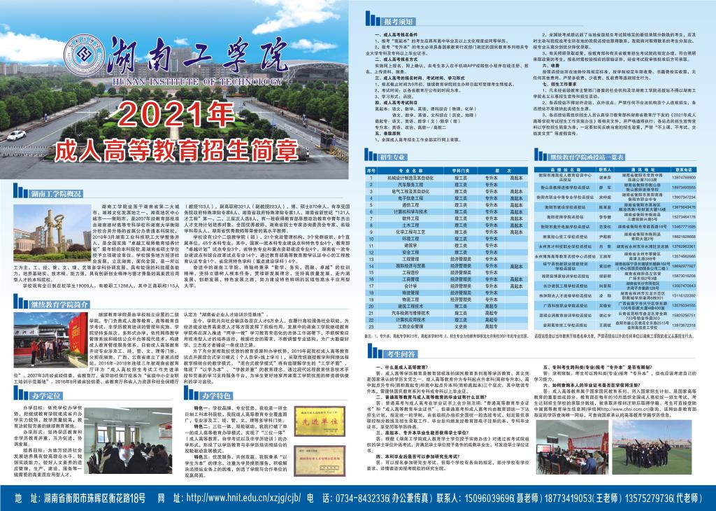 2021年成人高等教育招生简章