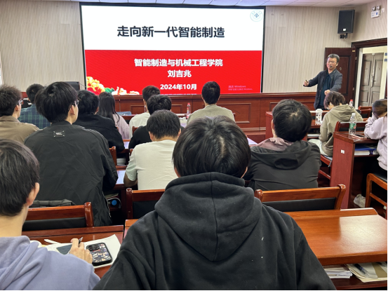 李天生在开班仪式上介绍,首期数字技术工程师初级班招收的43名学员均来自智能制造与机械工程学院大四毕业生。授课团队由学院12名教学实践经验丰富的教授、副教授及博士组成。本次培训为期19天,将通过“线上+线下”及“理论+实操”的教学方式,为学员讲授智能制造共性技术、智能装备与产线应用、工业大数据分析、工业人工智能等课程。智能制造与机械工程学院教授刘吉兆为学员讲授开班第一课——《走进新一代智能制造》。