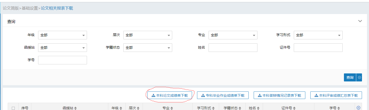 (3)汇总答辩学生答辩成绩,填好《本科论文成绩单》。