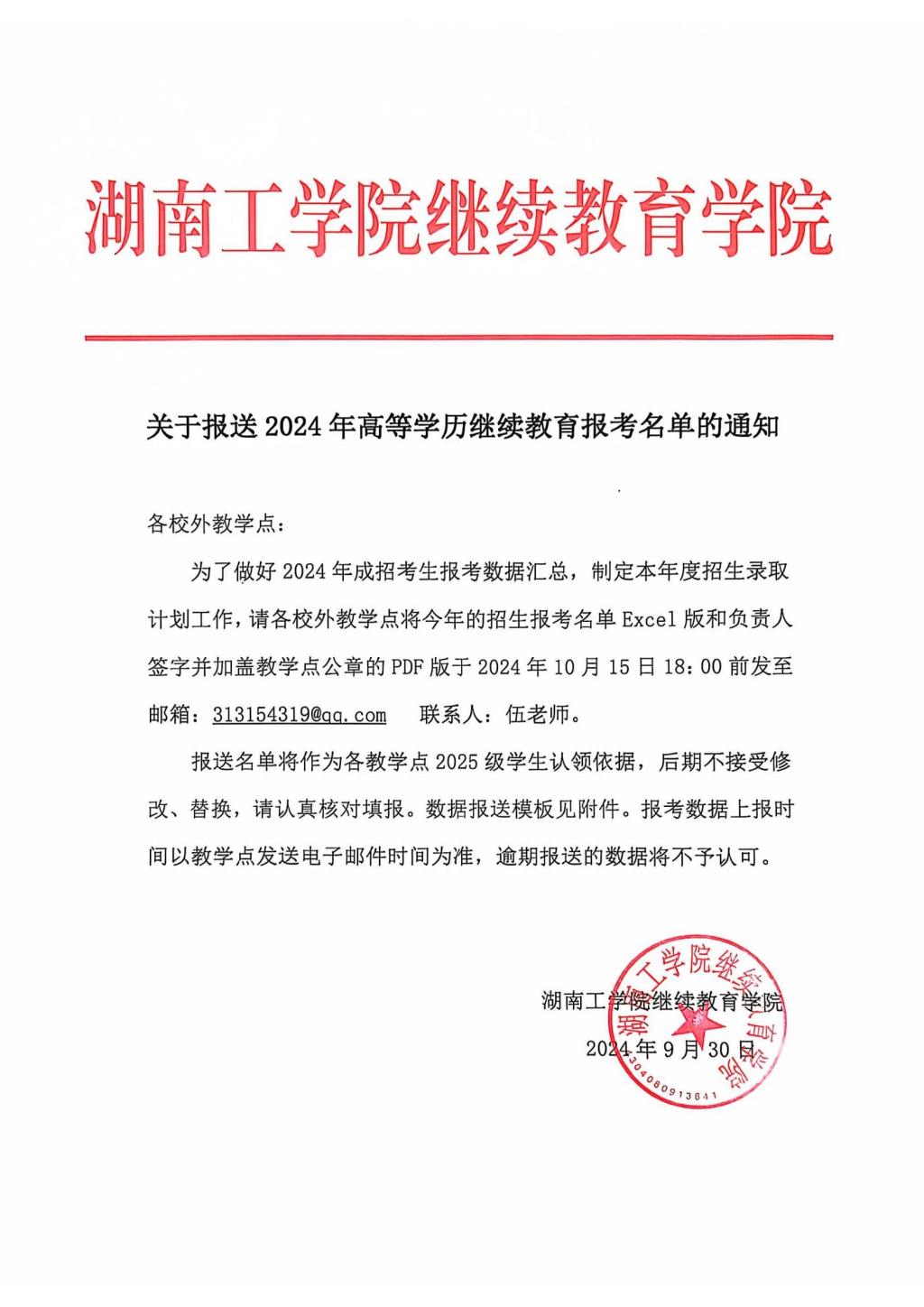 关于报送2024年高等学历继续教育报考名单的通知