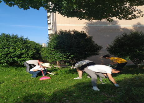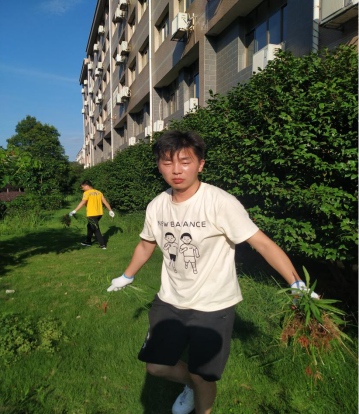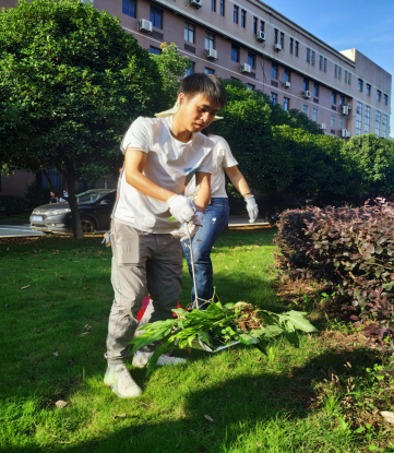 在烈日炎炎的下午,支部书记毕红霞带领支部党员参加此次活动,我们支部主要负责计信楼下草坪的除杂草任务。虽然太阳毒辣,晒得大家都已汗流浃背,甚至汗水蒙住眼睛,但是这些困难一点都没有打消党员的积极性,除草现场搞得火热朝天。党员志愿者们发扬不怕苦、不怕累、不怕脏的奉献精神,分工协作,经过党员一个小时的努力,计信楼下的杂草全部除尽。