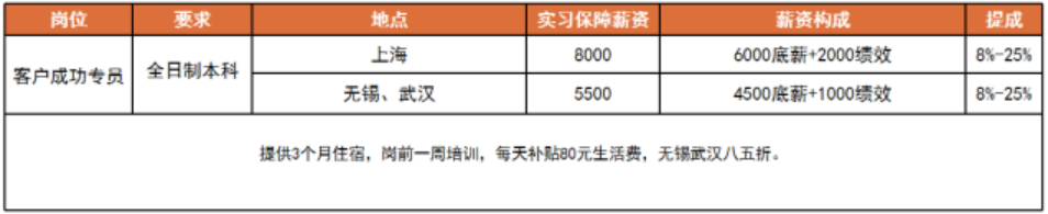 BASE地:上海、无锡、武汉(无锡、武汉未毕业实习生提供三个月免费住宿)