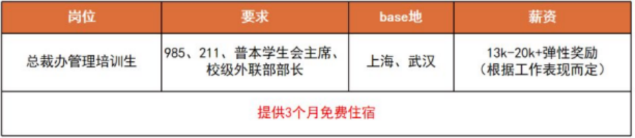 2、985 211学历,普本校学生会主席或校外联部部长,应届毕业生,专业不限,学习成绩优异;