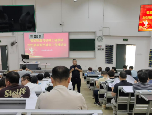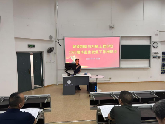 5月13日下午,智能制造与机械工程学院在机械楼4211召开2025届毕业生就业工作推进会。学院领导班子成员、教研室主任、全体毕业设计指导老师、三办主任及全体辅导员参加会议。会议由学院党委副书记王本强主持。