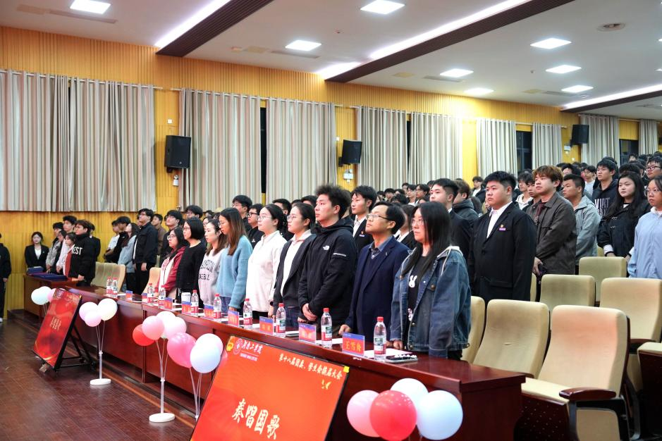大会在雄壮激昂的国歌声中拉开帷幕。会场内气氛庄严肃穆,全体与会人员肃然起立,齐声高唱国歌。