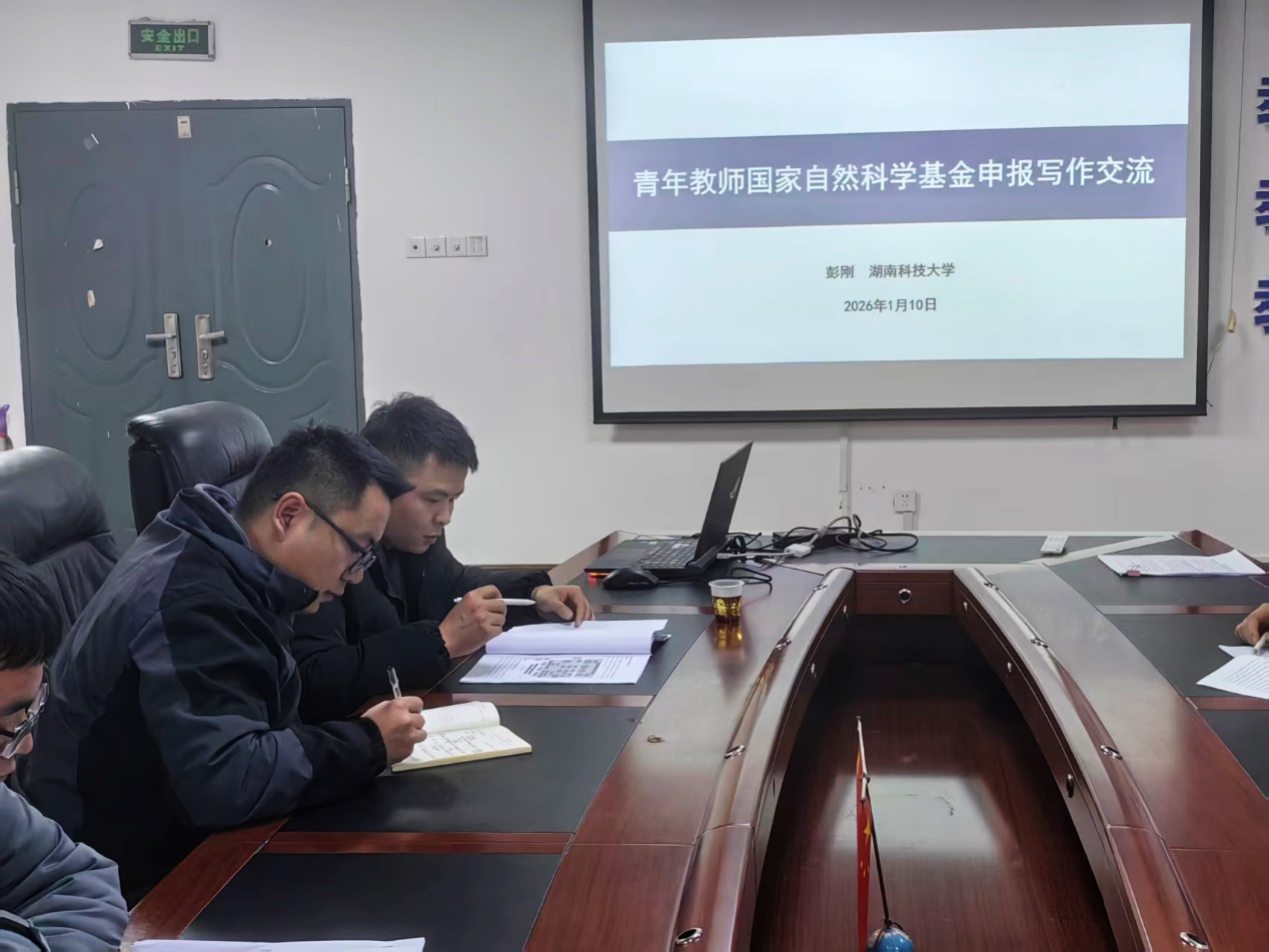 彭刚副教授作为湖南科技大学“湘江学者”高层次人才,具有丰富的申报与指导经验。报告中,他结合自身实践,系统剖析了国家自然科学基金申报的常见问题与撰写策略,围绕“选题创新性”“关键科学问题凝练”“研究方案设计”等关键环节展开了深入讲解。彭刚强调,优秀的申报书不仅需体现学术前沿性与技术可行性,更应逻辑清晰、重点突出,能够有效说服评审专家。他的讲解内容详实、案例生动,针对青年教师在申报中经常遇到的困惑给予了具体解答。