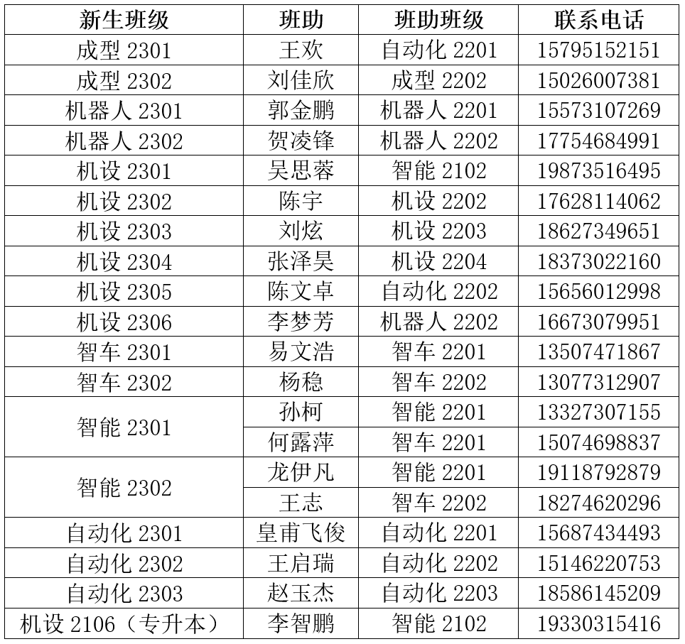 根据《智能制造与机械工程学院2023级新生班助选拔的通知》要求,结合7月29日线上培训情况,拟选聘以下20名学生担任智能制造与机械工程学院2023级新生班助,现将名单公示如下: