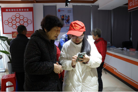 在活动现场,志愿者们教授老年居民怎样使用微信语音视频聊天和社保认证、紧急电话拨打、用手机进行医院挂号等等。大家手把手指导老人实际操作,帮助老人们解决在日常生活中使用手机遇到的问题。志愿者们的行动帮助解决老年居民们在智能应用技术方面遇到的实际困难,提升老年人运用智能设备能力,帮助老年人跨越“数字鸿沟”,享受幸福生活。