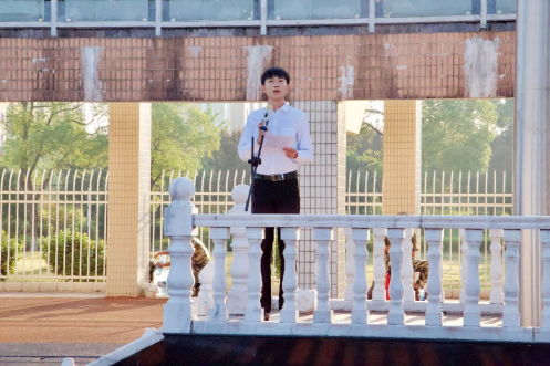 学生代表张晨涛发言,他表示同学们要抗战历史中汲取力量,怀揣爱国之心,报国之志,努力学习,勤奋工作,把我们的国家建设得更加美好、富强。