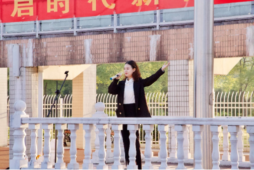 伴随着金晓妍同学深情的歌曲《阳光路上》,一营一连的新生缓缓拉开一面鲜红的党旗,全体师生满怀热情,为祖国献上最真挚的祝福。
